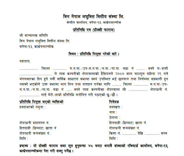 प्रतिनिधि पत्र (प्रोक्सी फाराम)